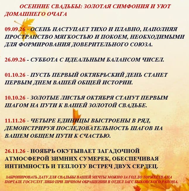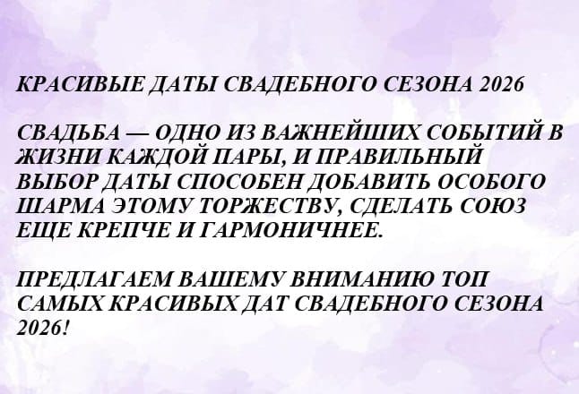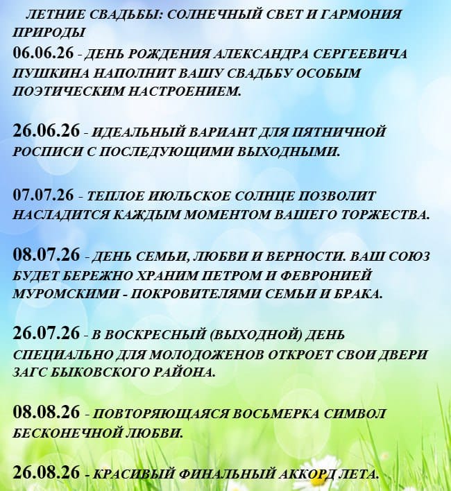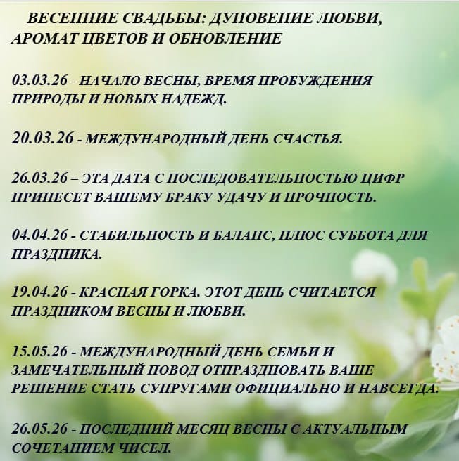 Красивые даты свадебного сезона 2026